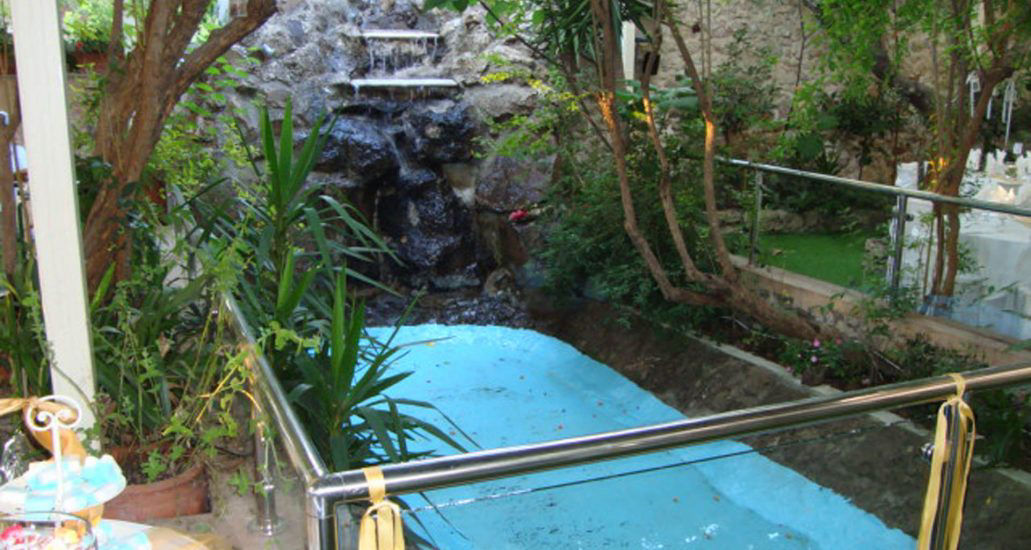 Είναι ιδανικός χώρος για εσάς που σας αρέσει να βρίσκεστε κοντά στη φύση. H πλούσια φυσική βλάστηση με το γκαζόν, τα δέντρα, τα ανθισμένα λουλούδια τα οποία έρχονται σε αρμονία με την πέτρα και το ξύλο, τον ήχο από τον τρεχούμενο καταρράκτη, την πέτρινη γεφυρούλα και την γαλάζια λίμνη θα αφήσουν τις καλύτερες εντυπώσεις σε εσάς και τους καλεσμένους σας. Ιδανικός χώρος για εκδηλώσεις από Μάιο έως Οκτώβριο με δυνατότητα μέγιστης φιλοξενίας έως 280 ατόμων με ιδιόκτητο Parking.